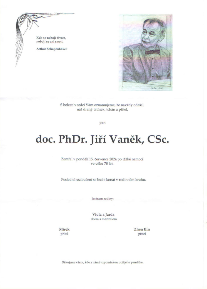 Smuteční oznámení doc. PhDr. Jiří Vaněk, CSc.
